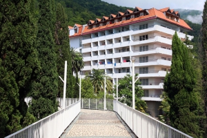 Для размещения в пансионате имеются два корпуса: 9-этажный корпус и 4-этажный корпус №2. Оба корпуса и вся территория утопают в зелени и цветах Приморского парка. Этот парк является гордостью дома отдыха: здесь собраны реликтовые деревья, лучшие кустарники субтропиков, различные пальмы, суккуленты, цветы. Над парком, в котором много дорожек для прогулок и лавочек для отдыха, возвышается открытая галерея, ведущая к лифту, ведущему вниз к пляжу. Объект располагает собственным пляжем с чистой галькой, шезлонгами, зонтами. Работает летнее кафе, детские площадки, бар.